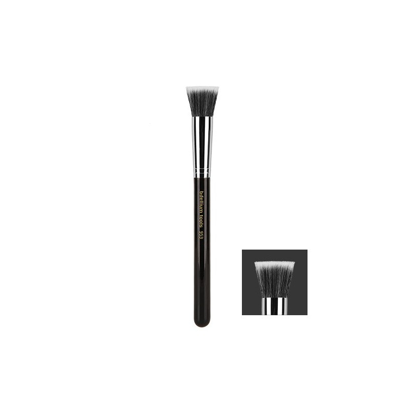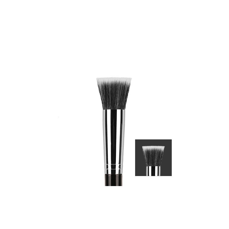 Kratka plosko oblikovana glava omogoča precizno in enostavno nanašanje pudrov, krem in emulzij.