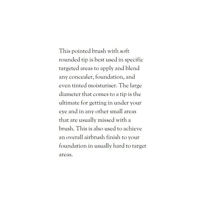 Nanshy Pointed Brush (Conceal Perfector) je čopič namenjen nanašanju podlage, korektorja, obarvanih ali BB ter CC krem. Kupolasta glava omogoča nanos tako na večje površine obraza kot dostop do manjših kotičkov obraza.