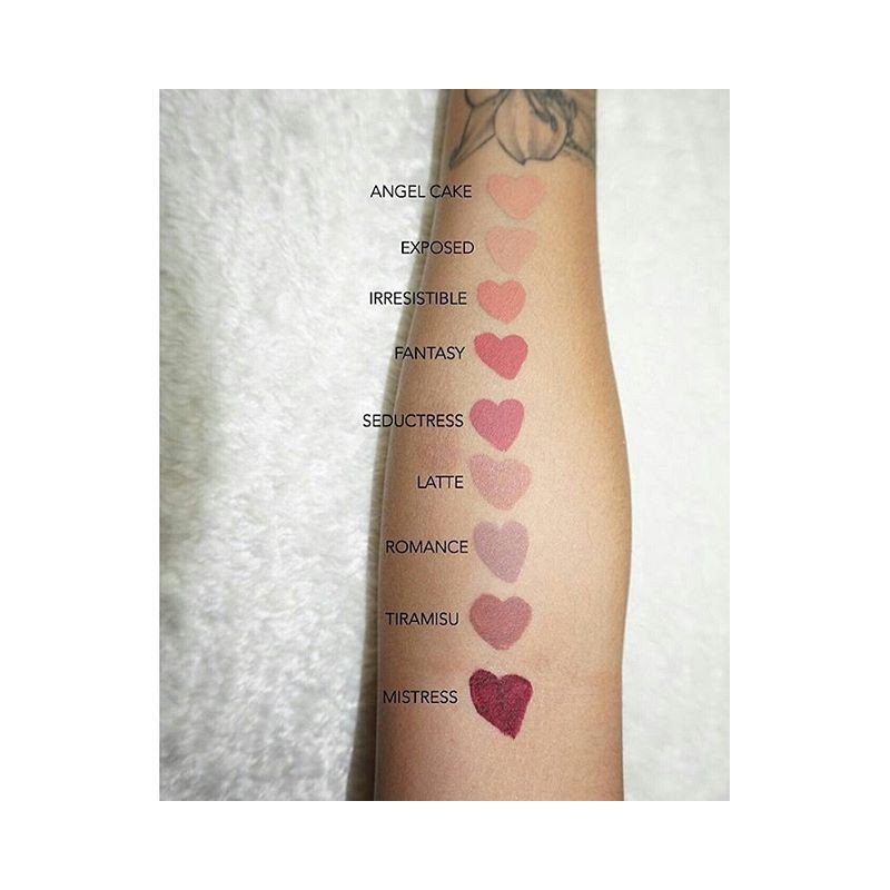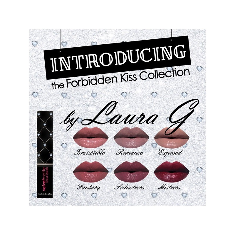 Kolekcija Forbidden Kiss linije LA Splash Velvet Matte šmink vključuje 6 individualnih odtenkov z dodanim vitaminom E, ki omogoča žameten matte finish brez izsuševanja ustnic.