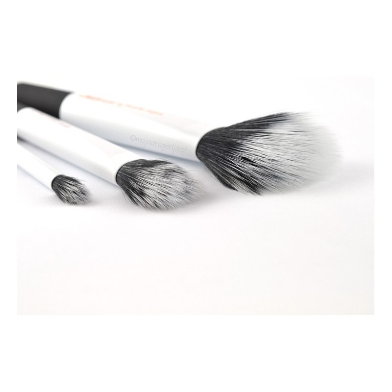 Vsi čopiči so duofiber (iz dvojnih ščetin) in jih lahko uporabljamo tako za nanašanje suhih ličil, kot tudi tekočih in kremnih.