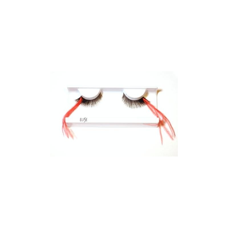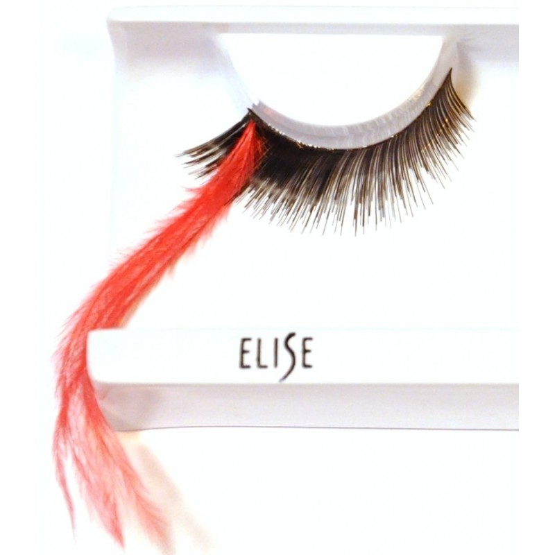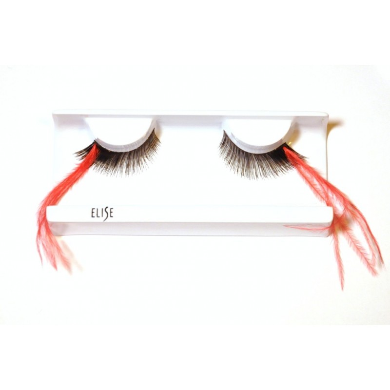 Klasično črne trepalnice z daljšim pernatim vsavkom v rdeči barvi.